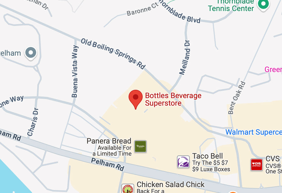 Greenville is a textile town and the center of Blue Ridge drinking culture – and Bottles Beverage Superstore in Greenville is the toast of the town. Come on in for the world's best-known labels and hidden local discoveries. Ask our staff for their favorites. It's like a boozy treasure hunt.